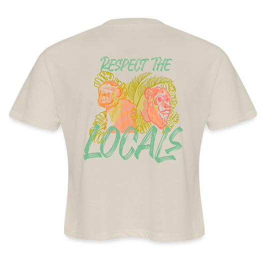 Respect the Locals - Beige Women's Cropped T-Shirt - Green Logo